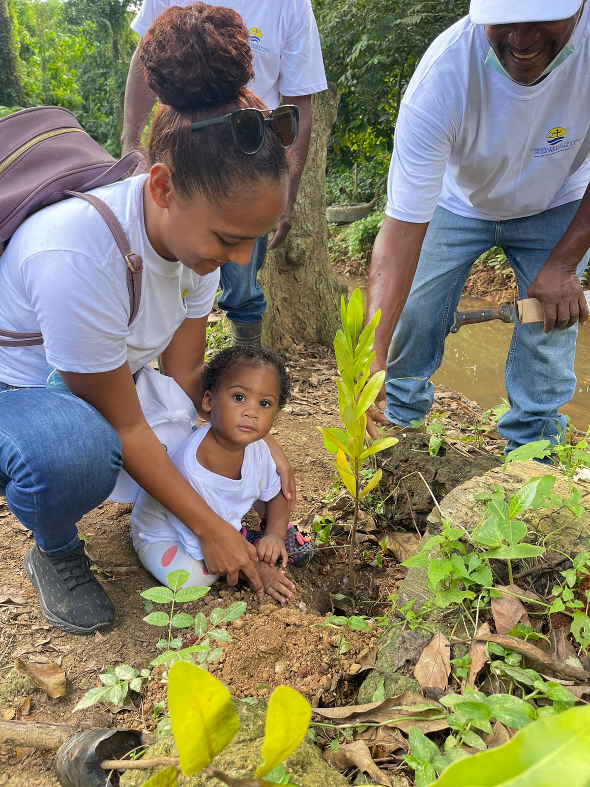 De hecho, a los setenta y ocho empleados presentes se sumaron sus respectivas familias, incluidos 54 niños que pasaron toda la mañana ayudando a sus padres a sembrar unas 2.000 plantas en la zona denominada Río María Eliseo, en el sector La Granja, en la que, para ellos, se ha convertido en una verdadera lección de ecología.